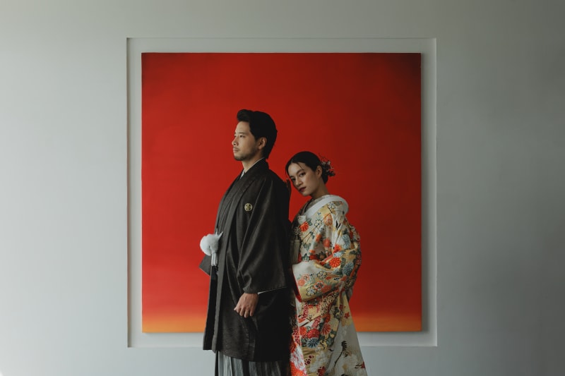 今回のお二人のテーマはカッコよくがテーマとのことで、ヘアメイク・衣装のコーディネートははっきりしたお色味で合わせました。