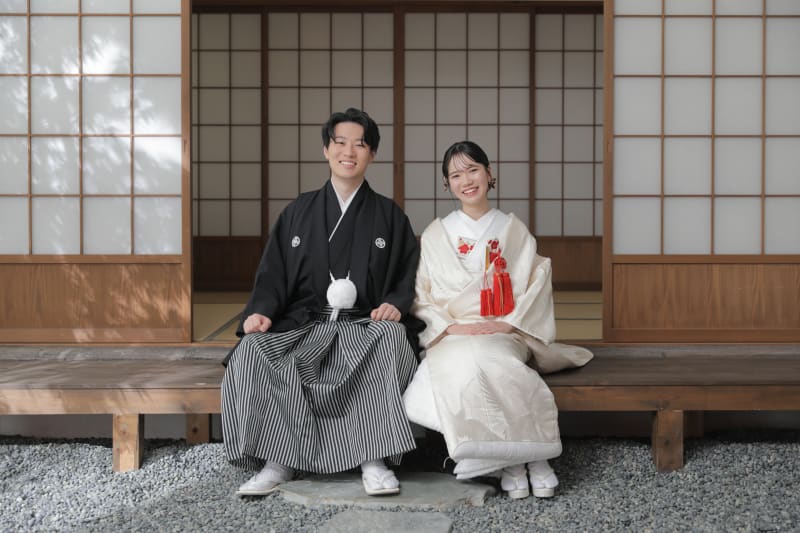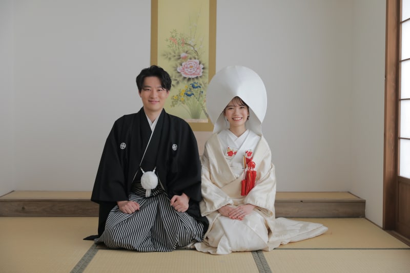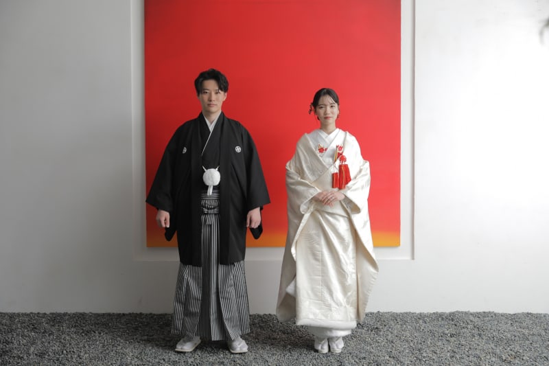 ご新婦様の白無垢と赤壁のコントラストが綺麗で映えますね!