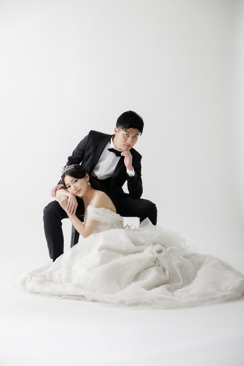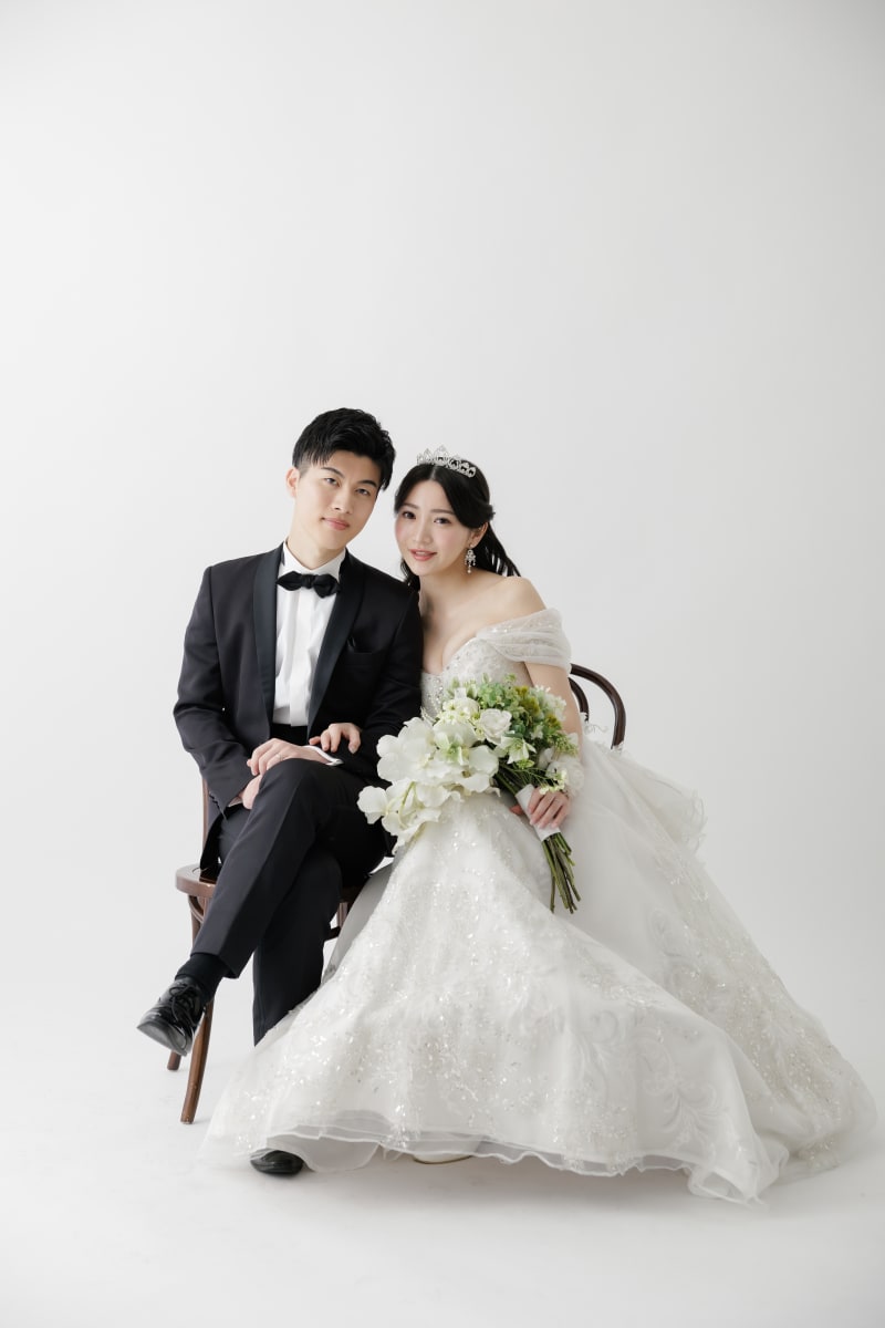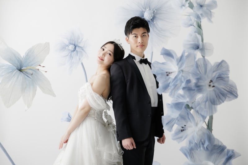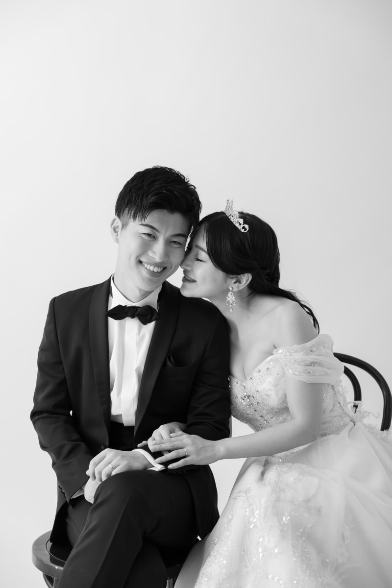 無地背景のシンプルなスタジオで、お二人らしさをより引き出しやすいプランです^^