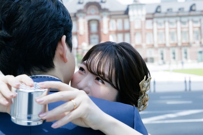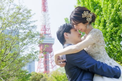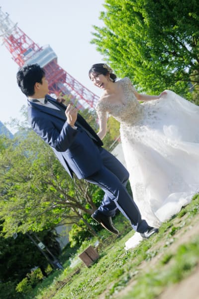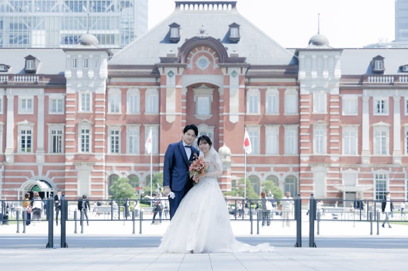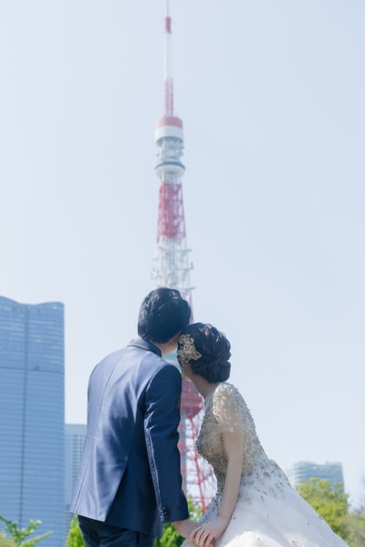 東京駅と、東京タワー、そして東京の街が好きだという新婦様の希望のもと叶った撮影。