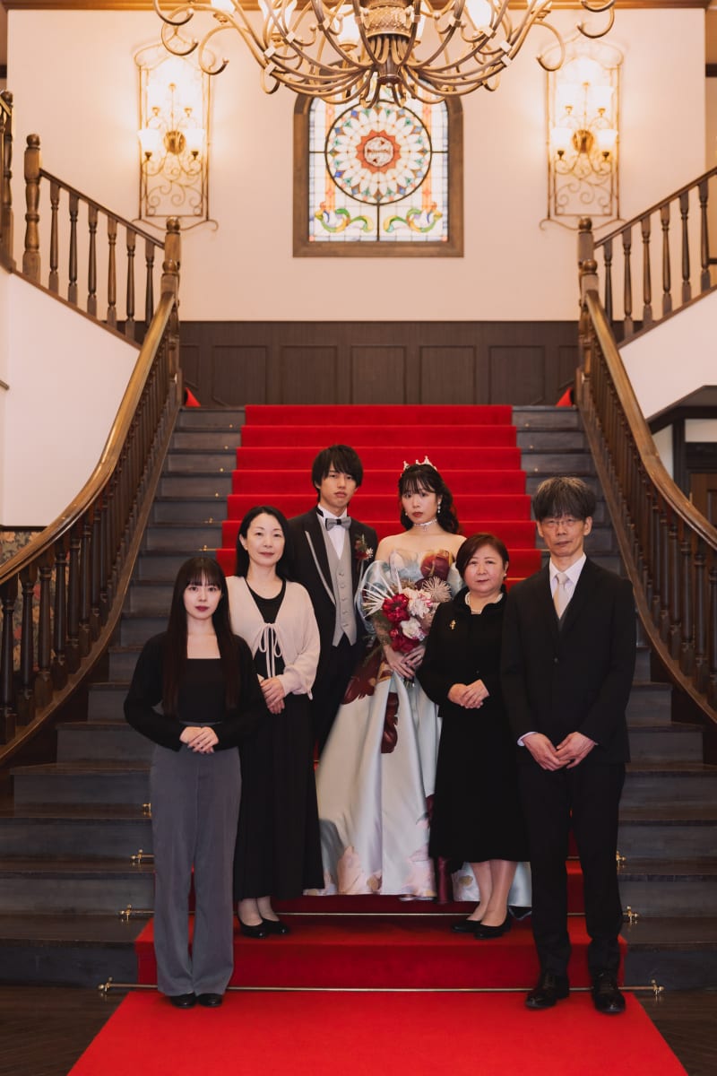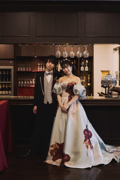 初めてのカラードレス撮影!赤に上品な青が映えます!
