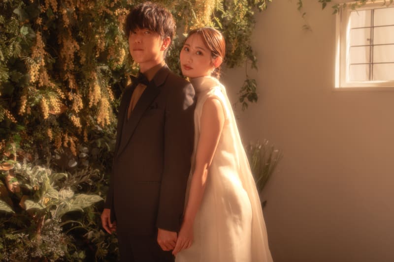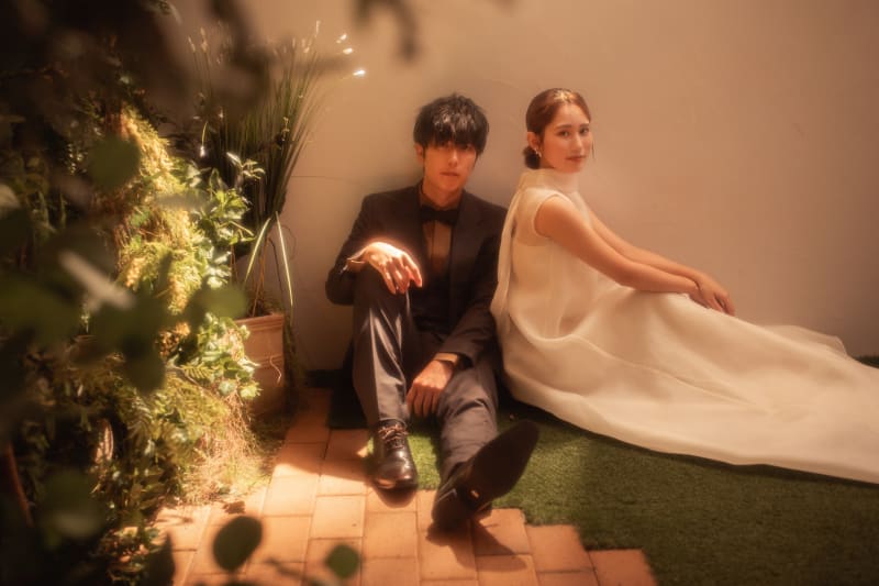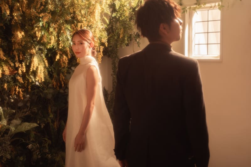 スタジオでの夕陽撮影は、実際外で撮っているような体験です。窓から差し込む柔らかな光が、二人のロマンチックな瞬間を優しく包み込みます。