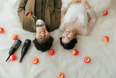 とっても可愛いご新婦様とりんごでジャグリングするご新郎様、最高でした!