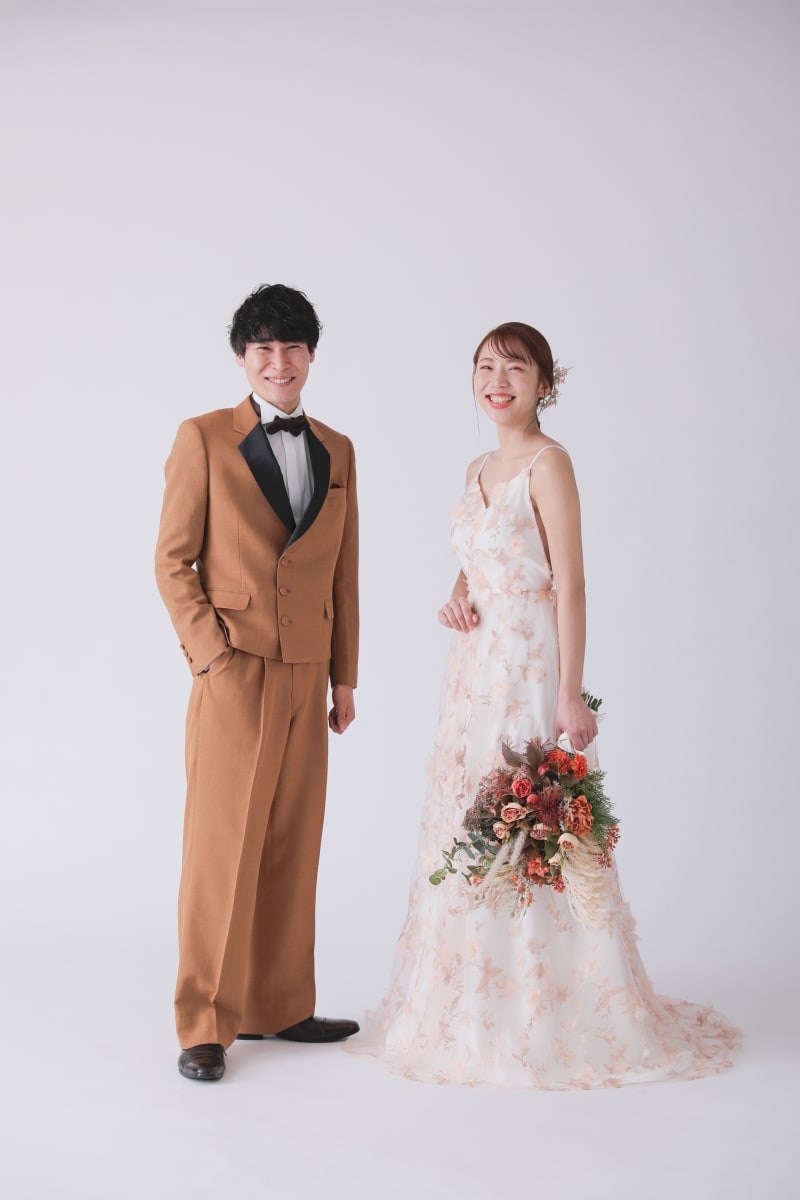 新郎さんのタキシードはドレスに合わせてベージュやブラウンがオススメです!