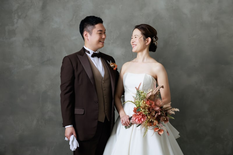 グレーの背景では大人っぽい雰囲気を演出し、お二人の素敵な雰囲気にもとても合っていました!