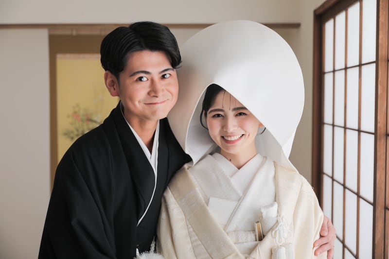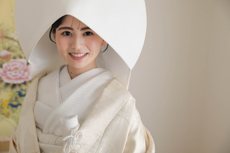 お茶室ではご新婦様に綿帽子をお召しいただきました。