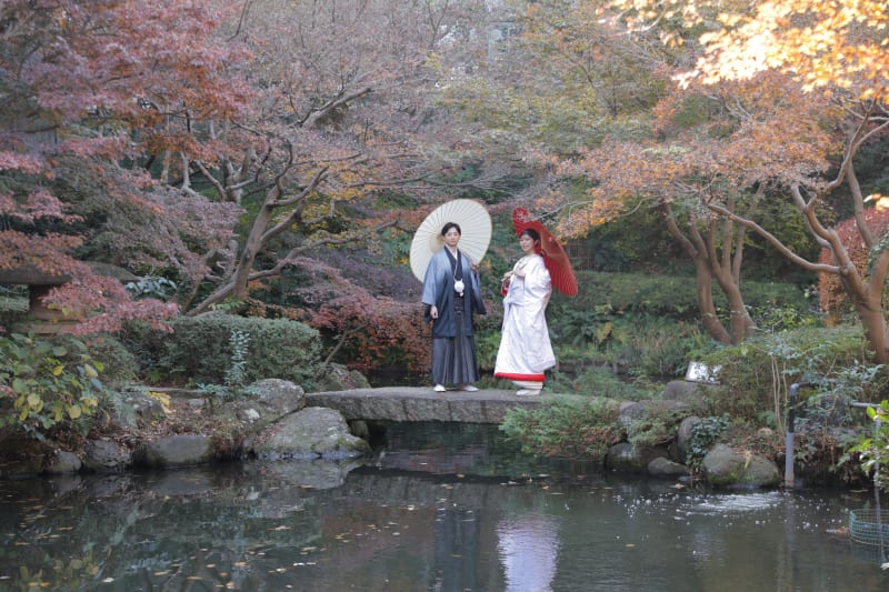池田山は紅葉が美しく、和傘との相性がとても良いです!