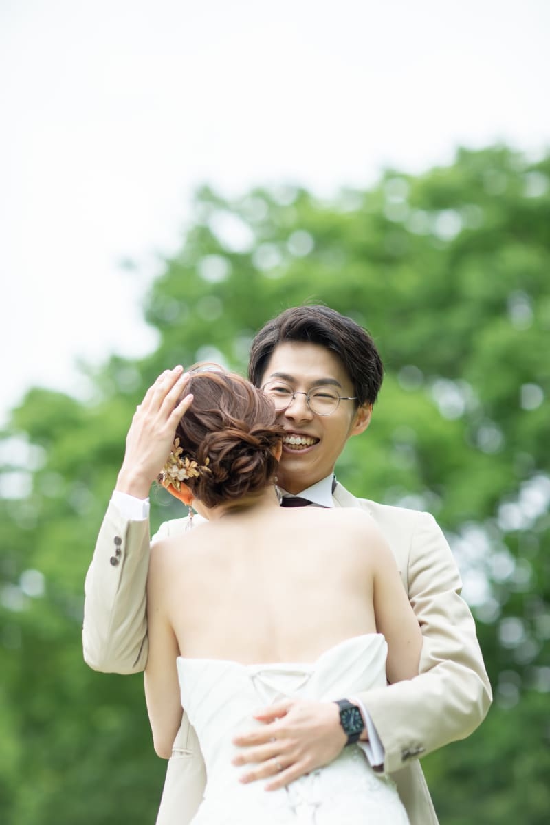 ハグしていただいた一枚。ご新婦様のこの表情、めちゃめちゃ可愛い、、。