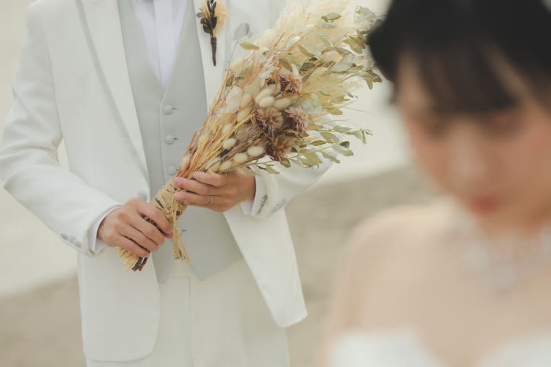 まずは新郎様から新婦様にブーケをプレゼントしているシーンから
