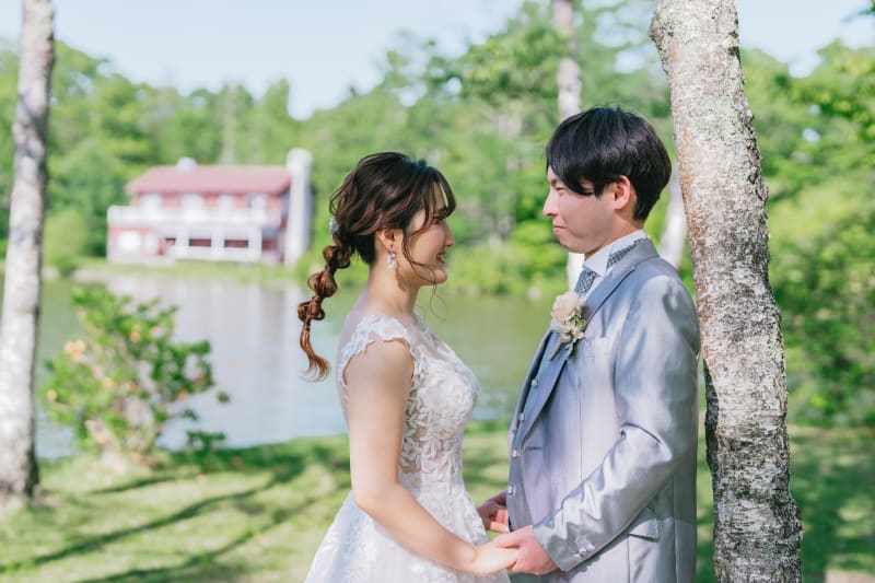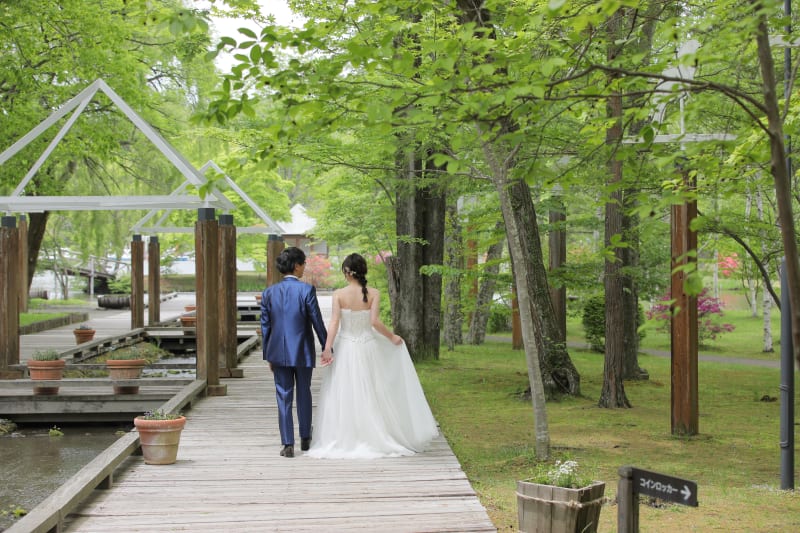 緑の中で撮る時は、お散歩しているかのようなカジュアルさがあっても素敵ですよね!