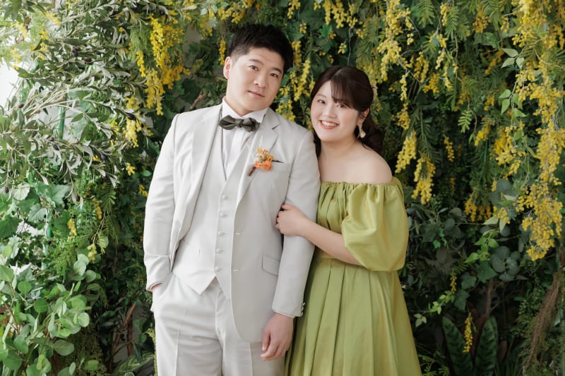 今回のご新婦様は黄緑色のカラードレスをご着用していただきました!