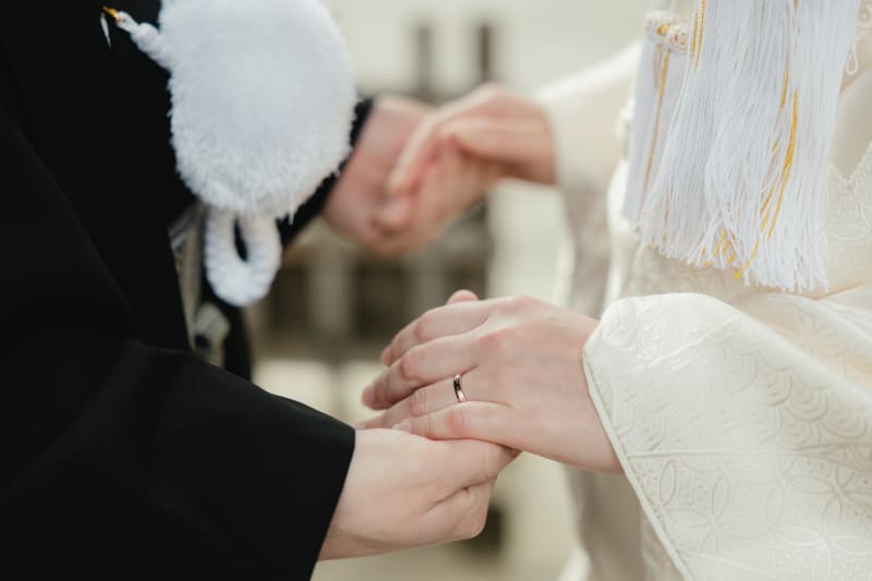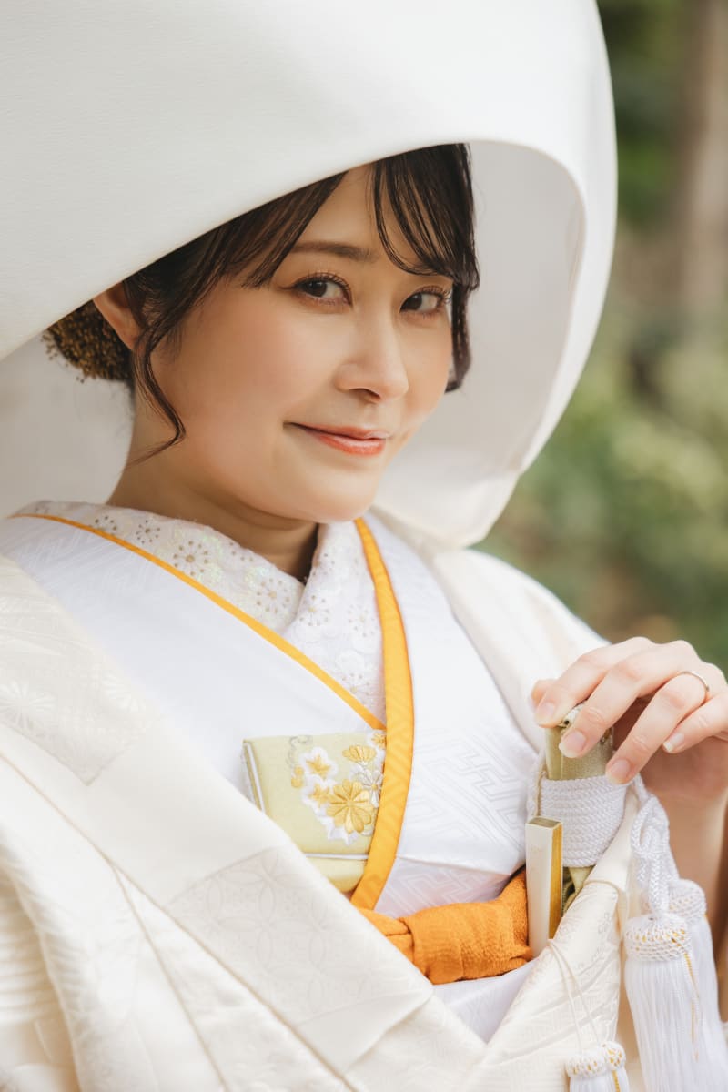 ご新婦様の白無垢に合わせたオレンジとゴールドの小物コーディネートもとても素敵です!