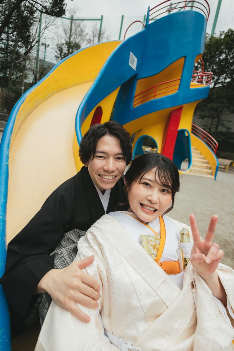 公園の自然な景色がよりお二人のお着物姿を際立ててくれます!