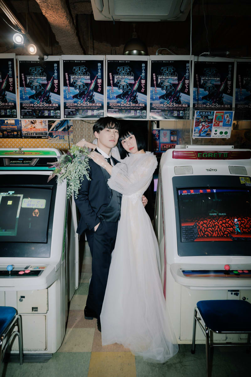 ゲームが大好きな新郎さんとお二人の思い出が詰まった場所で撮影をされました!