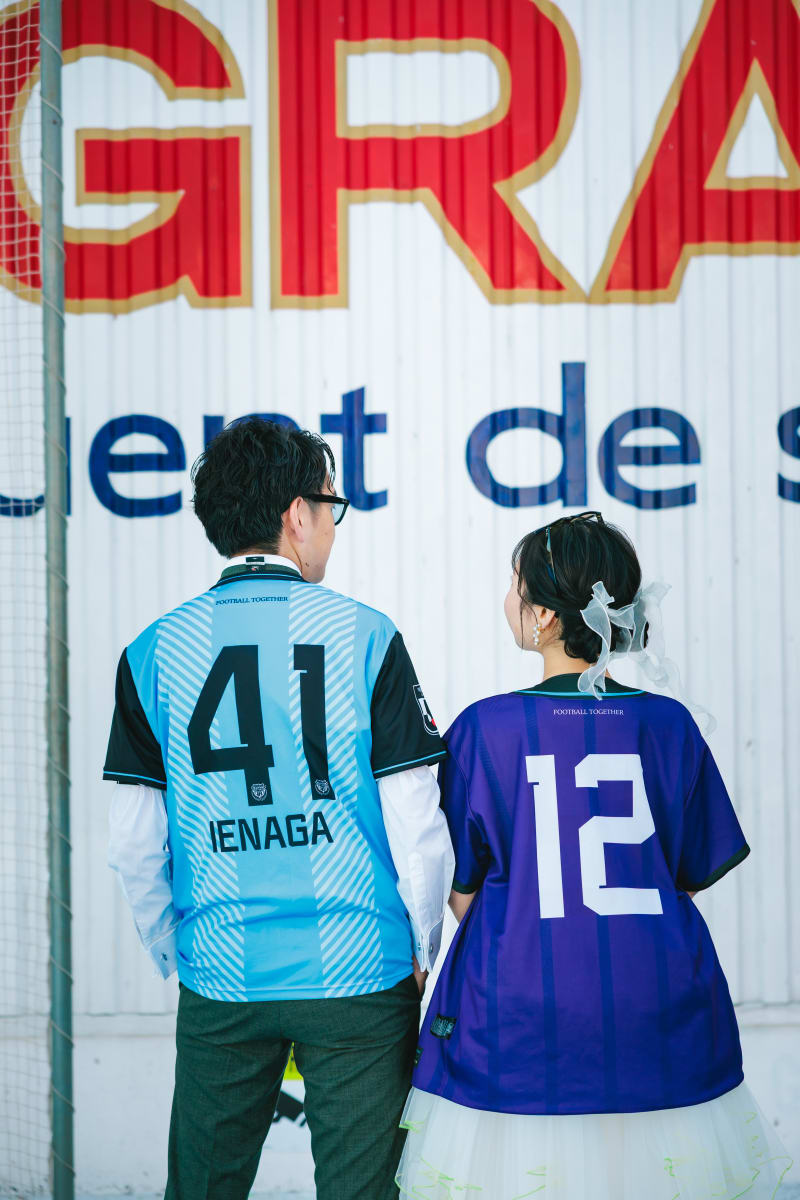華やかなドレスやタキシードの上に、あえて思い入れのあるユニフォームを羽織るスタイル!