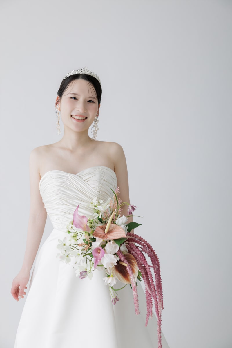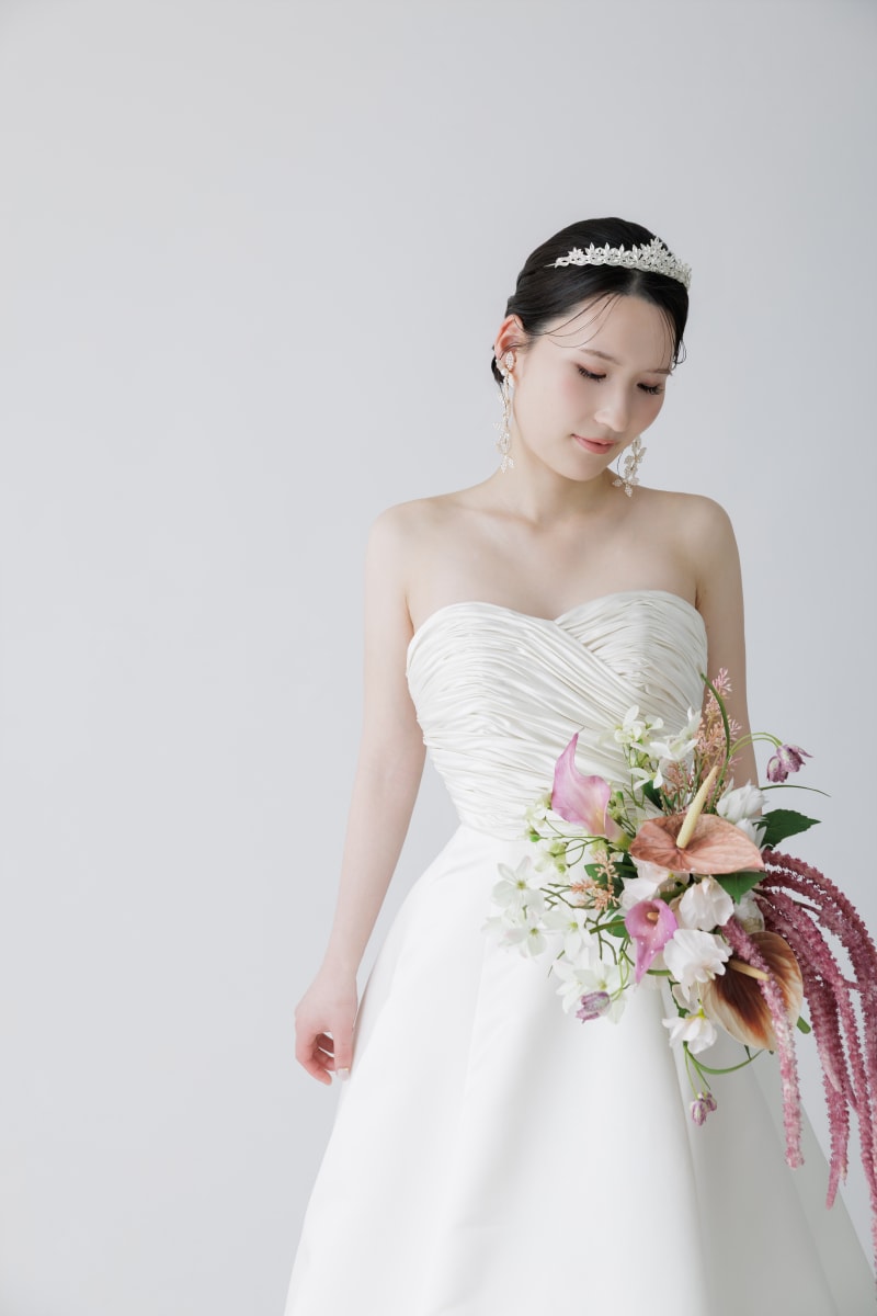 ドレス姿なので目元にもラメをプラスして華やかさを