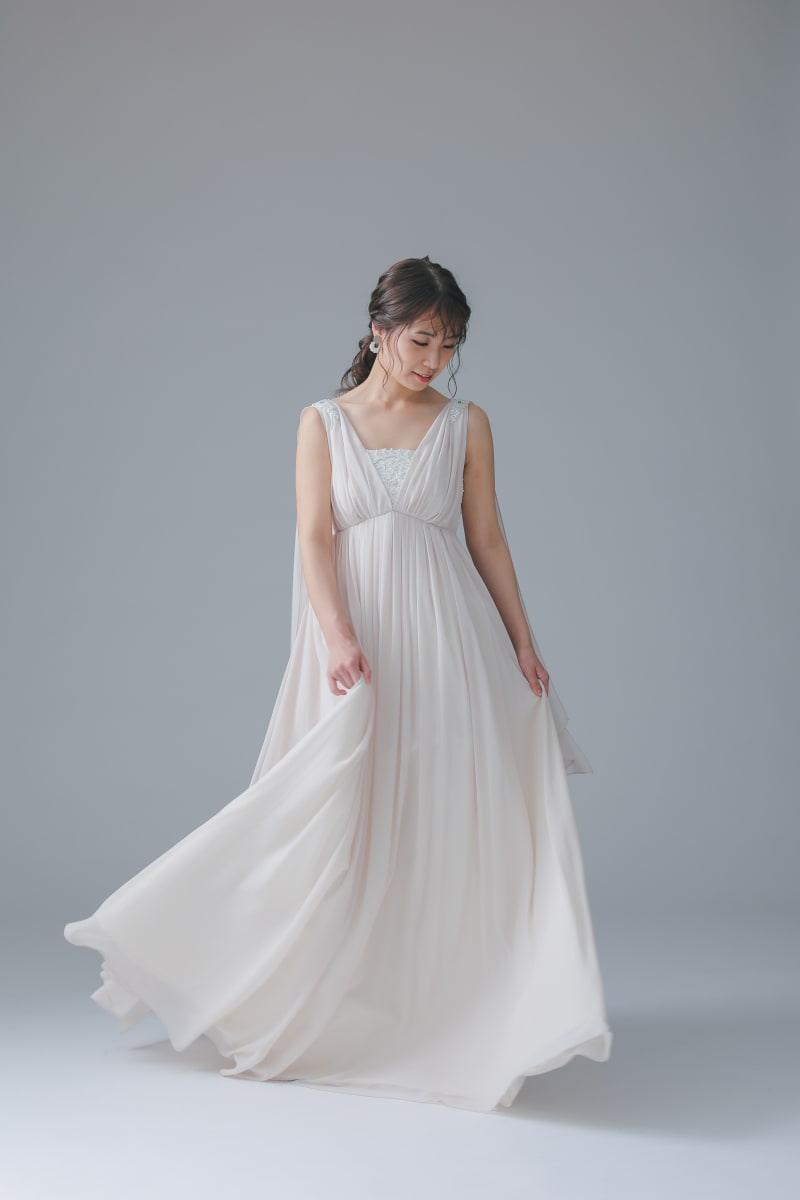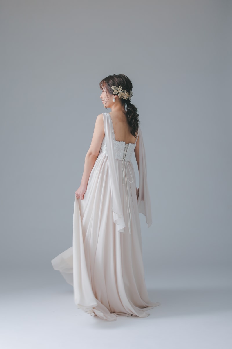 ドレスはレース系で色味もピンクベージュの柔らかい雰囲気のもので