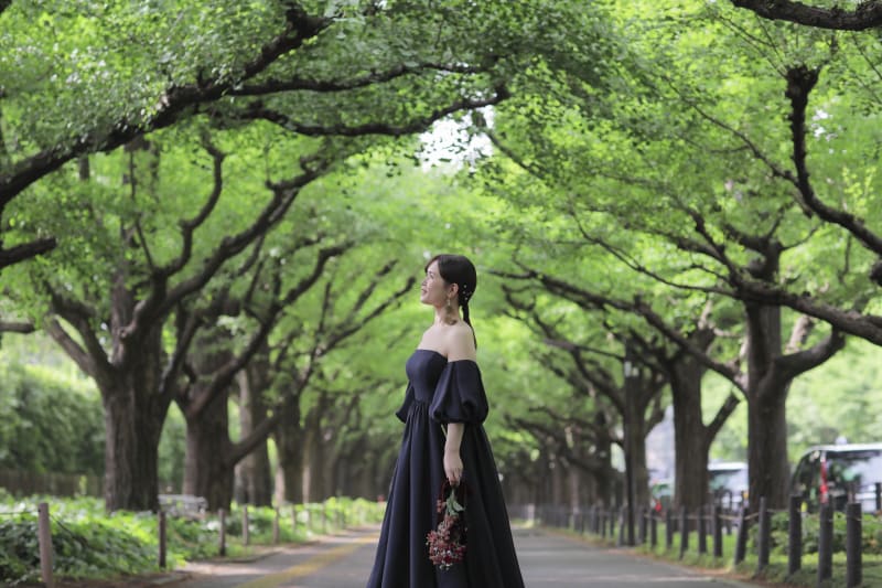 外苑前での撮影はウエディングドレスで行くことが多いのですが