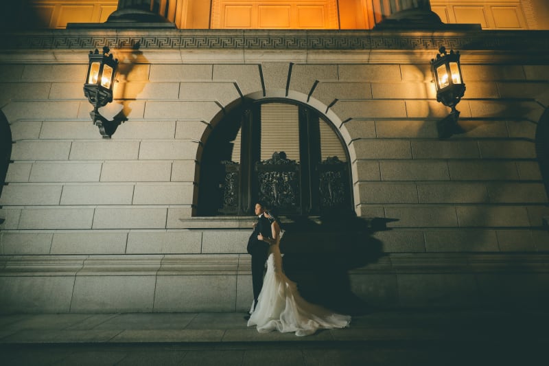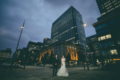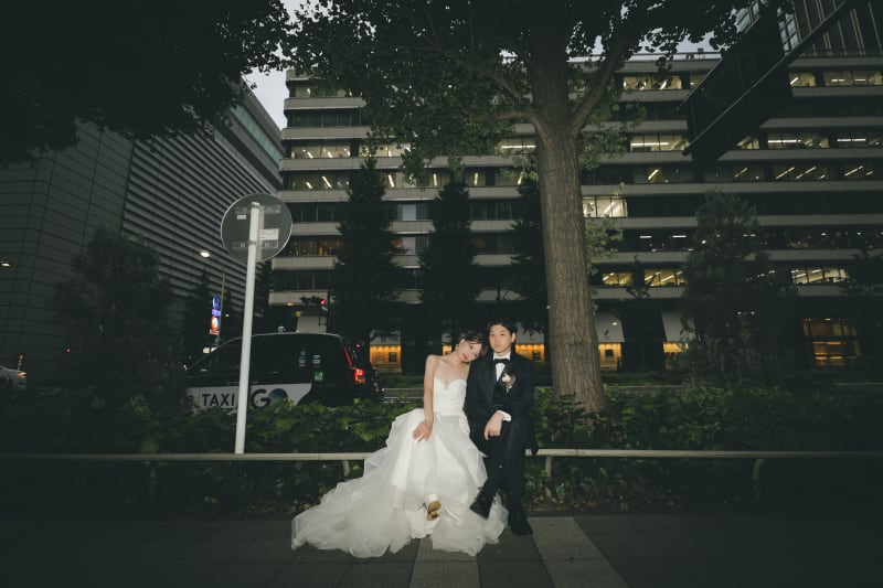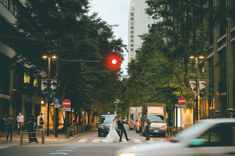 車が通っていたり街ゆく人も居たり。あえてその時の風景を全て入れ込むのも素敵です!