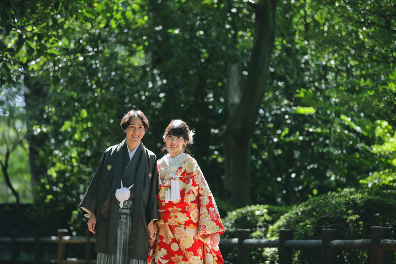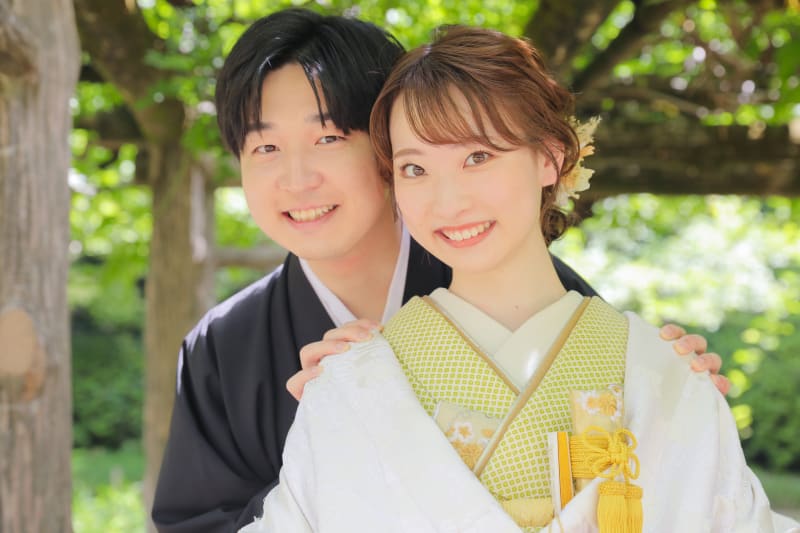 こちらの白無垢は純白の色味に掛下を黄緑にすることで