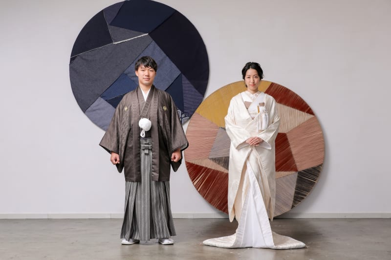 こちらは白無垢にトレンドでもあるベージュ系の小物を合わせており