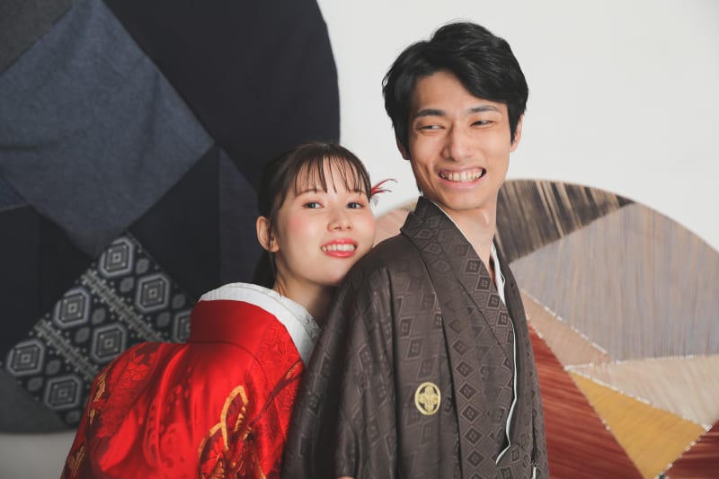 ご新郎様は、王道の黒紋服ではなく優しい雰囲気のチャコールグレー紋服に。