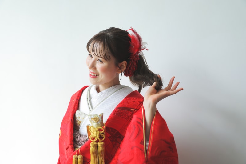 赤無垢には、ご新婦様の慶びの心境と祝いの心を表す意味合いがあります。
