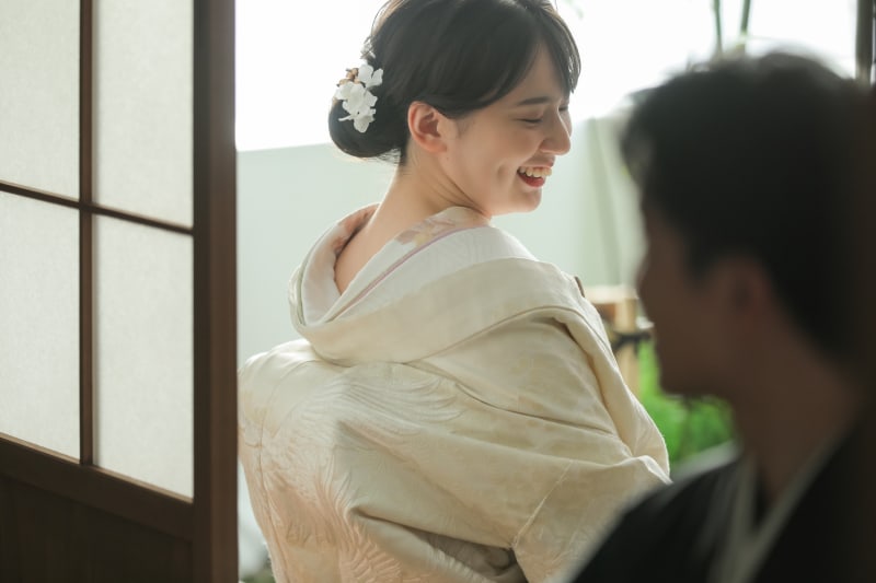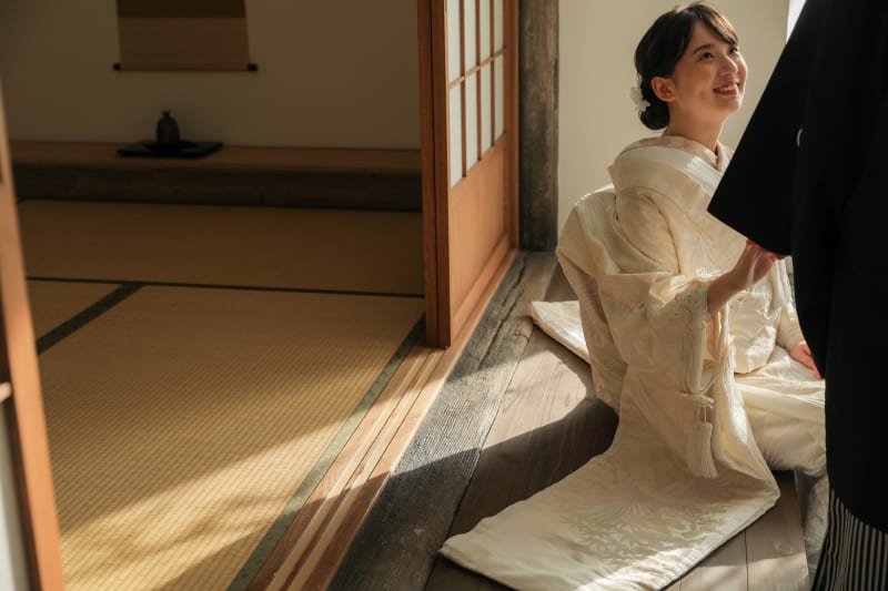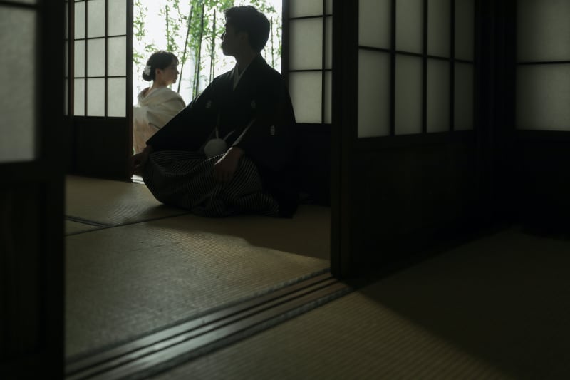 外みたいな縁側以外にも、渋谷店は和装が映えるモダンな背景もご用意しております*