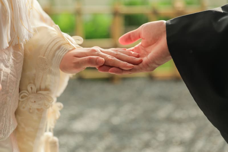 お二人で。これから紅葉シーズンとなるのでもみじと共に。