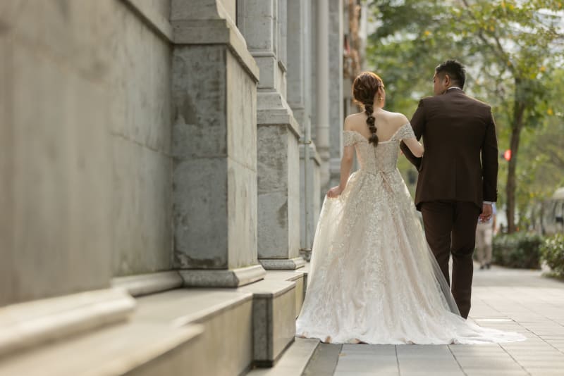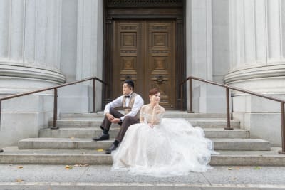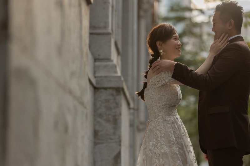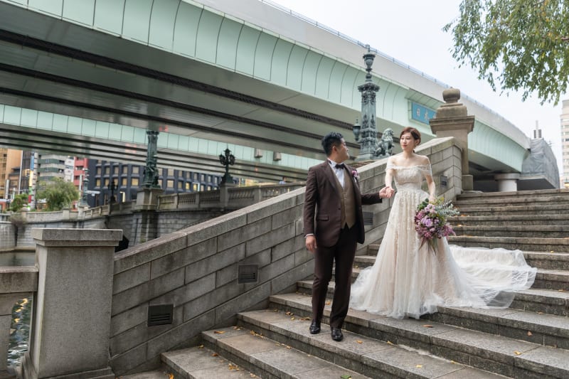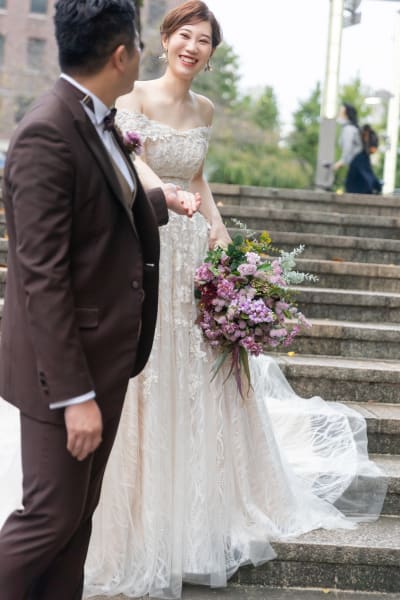 次は階段をお二人が降りている写真ですが、新郎様が優しい表情でエスコートをしている感じが伝わりますね!