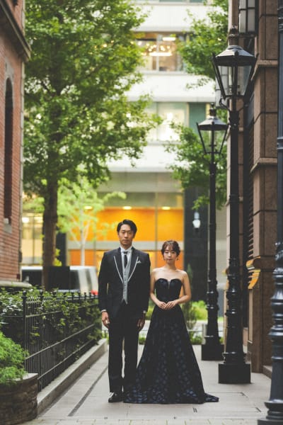 王道のウエディングドレスではなく、ブラックのカラードレスを選ばれ、ブラックコーデでの撮影!