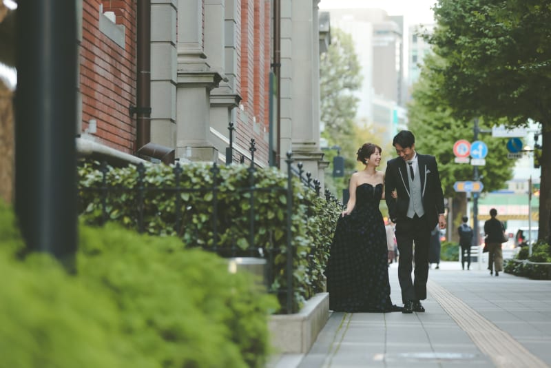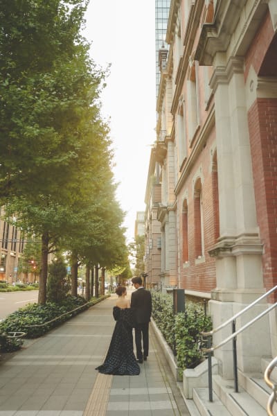 東京駅周辺のロケーションと、お二人のコーディネートがばっちりマッチしていました!