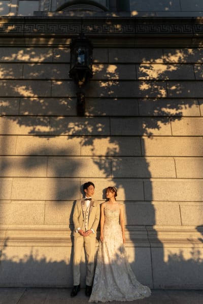 この画像のようにライトの下で新郎さんから新婦さんにジャケットをかけている