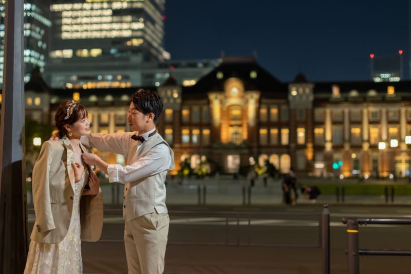 日が落ちた頃に東京駅舎をバックに撮り始めます༄