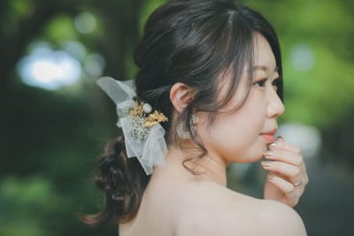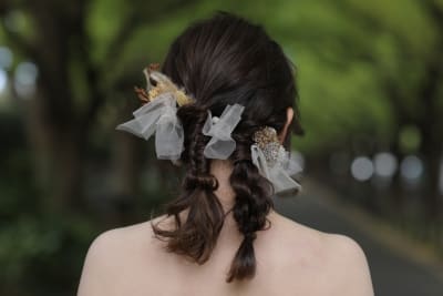 髪飾りはドライフラワーとチュールを組み合わせてみました,,,,