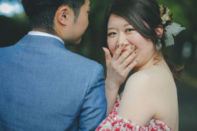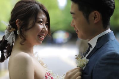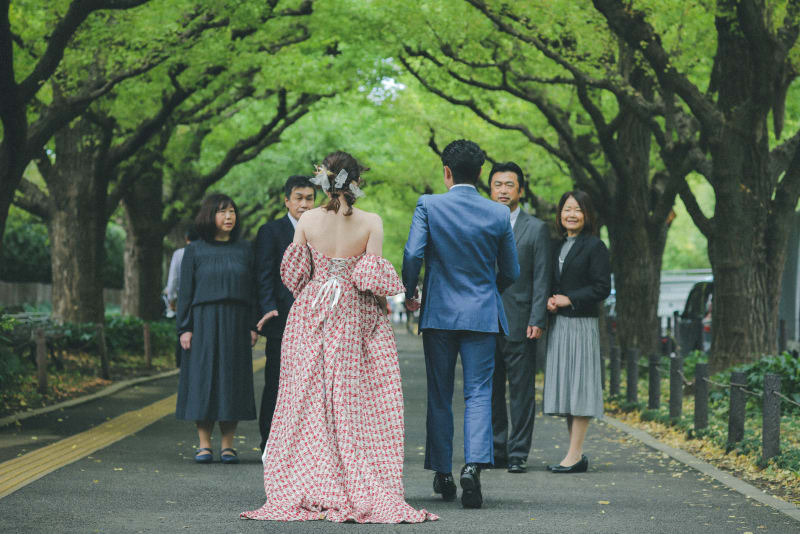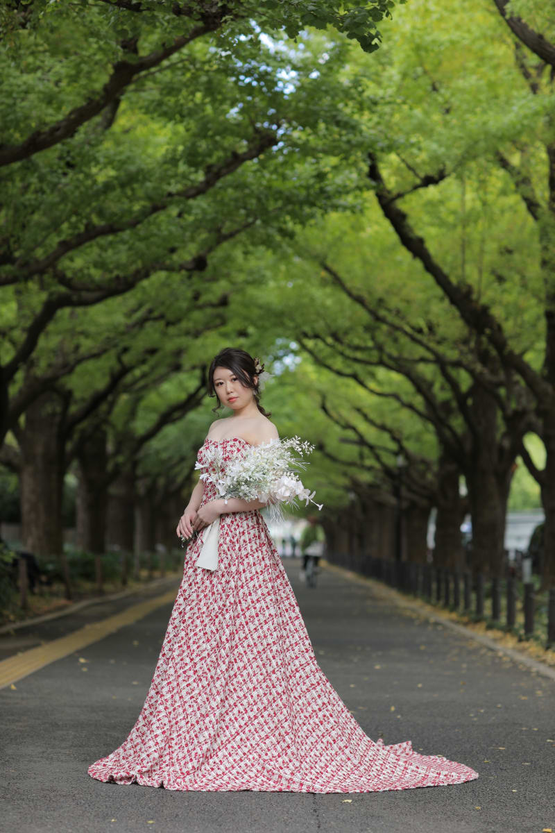 画像のお客様は、外苑前でのロケーションにてカラードレスを着用しております!