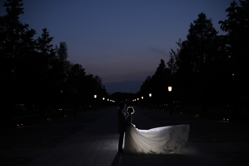 夕暮れ時の撮影カット。シルエットでおしゃれな感じに。