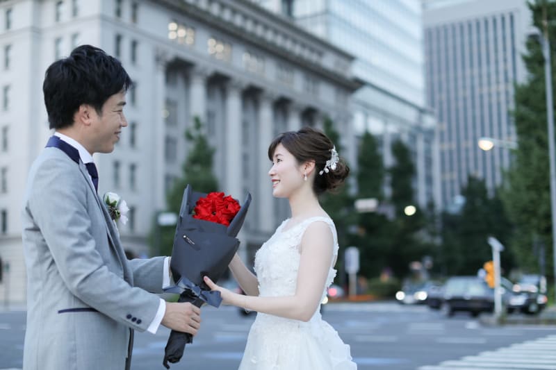 この日はご新郎様がプロポーズの際に使用された、バラの花束をお持ち頂きました。