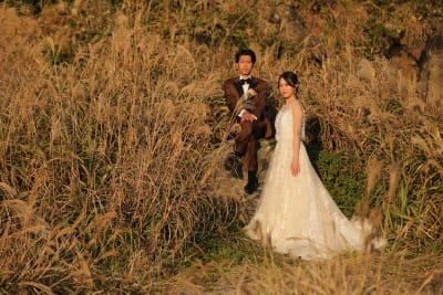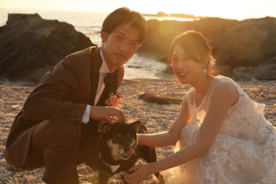 お二人のワンちゃんを連れての撮影でとってもかわいかったです!