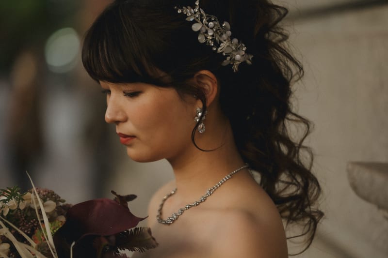 新婦さんのヘアスタイルは希望の画像を持参してくださいました!! ⾼めのポニーテールとってもお似合いでした!
