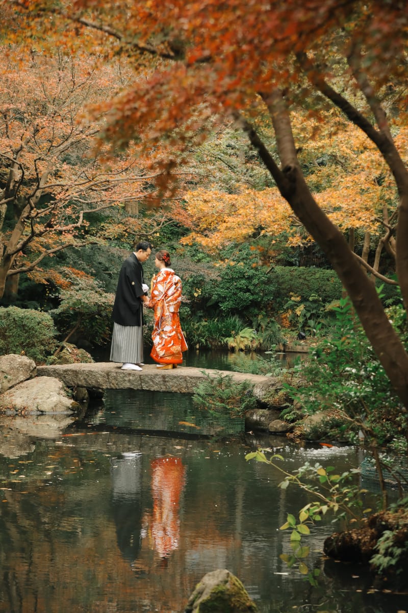 池田山公園はしっかりとした造りの日本庭園なので、四季折々の景色が和装にばっちり合っていました!