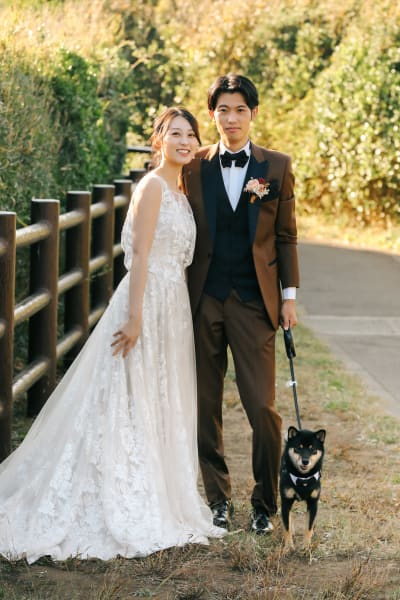 可愛い可愛い黒豆柴くん!ご主人二人の幸せそうな姿を見て、にっこにこの笑顔でカメラ目線をくれました♪