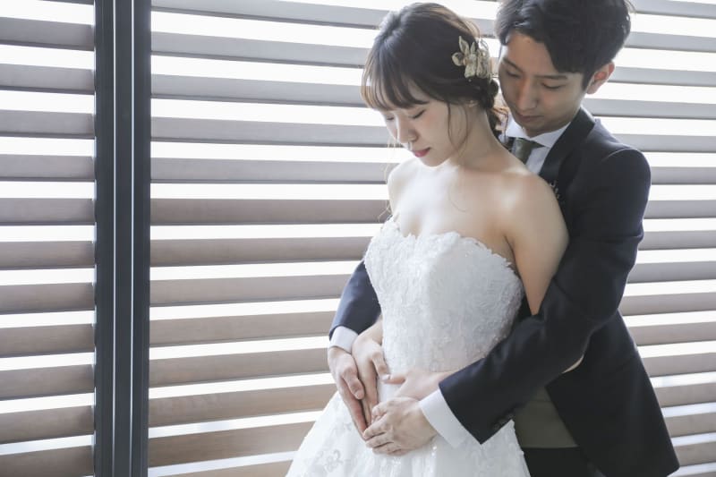 実はご新婦様のお腹の中には赤ちゃんが、、、