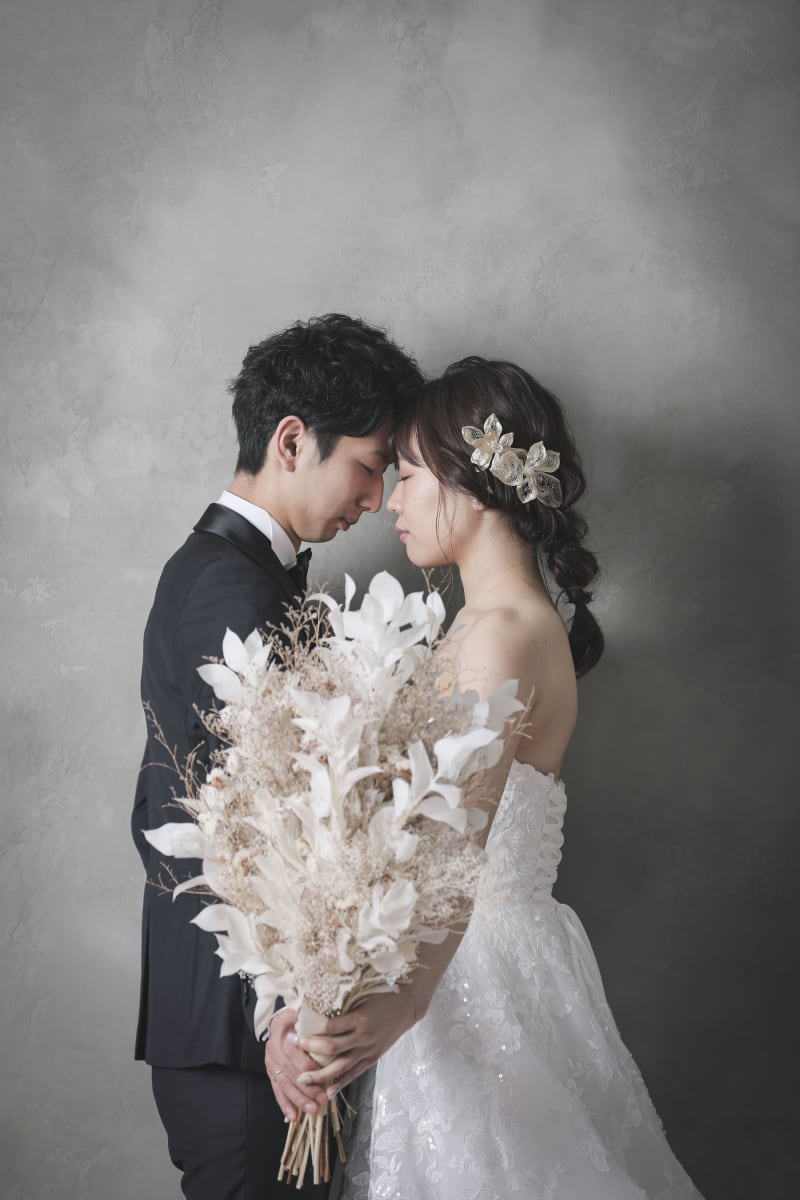 真白な背景は文字入れなどもしやすいので式を控えているお二人には特にオススメです