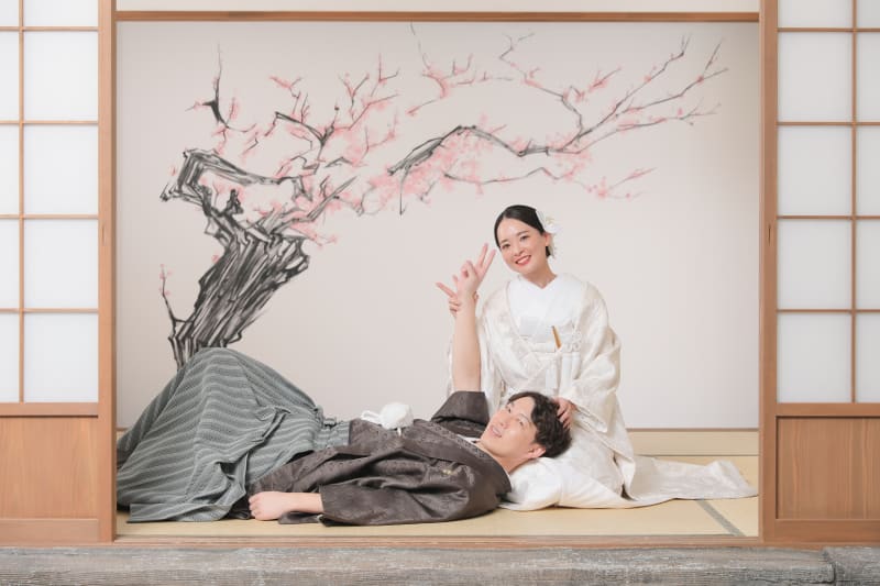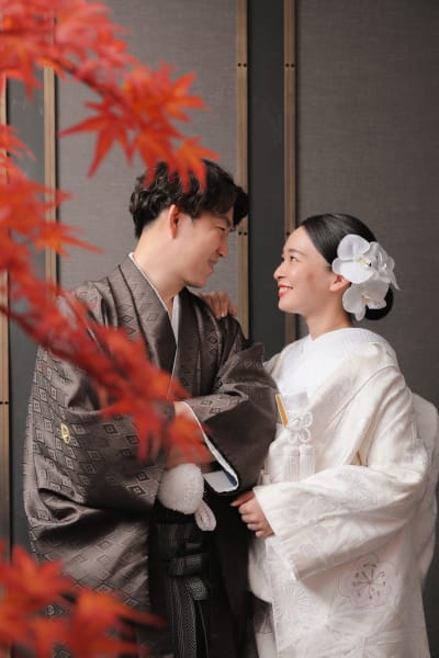 スタジオアクア表参道渋谷店の屋内庭園スタジオには、紅葉も桜もあります!お二人のお好みや、お式の時期に合わせて撮影が可能です!