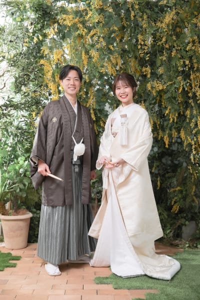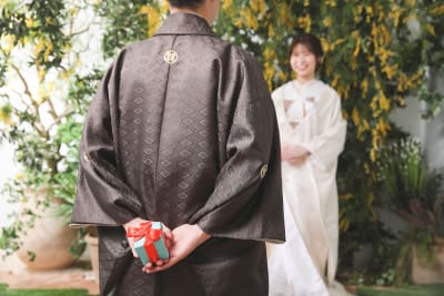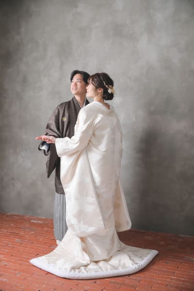 お辞儀のショットだけでなく、お着物が綺麗に見える後ろ姿も。