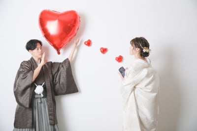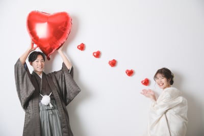 お二人にお持ち込みいただいた小物は、ハートの風船!