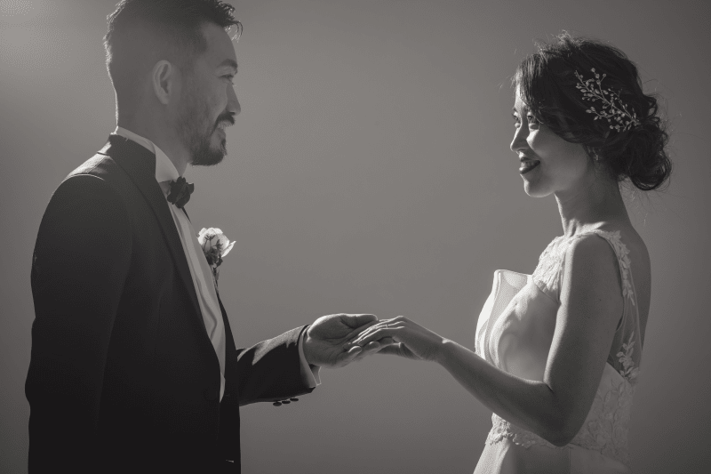背景を黒にすることで、お二人にすっと目が行きますね。