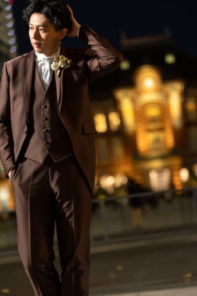 夜になり駅舎バックに撮影、ソロカットももちろん撮影します!