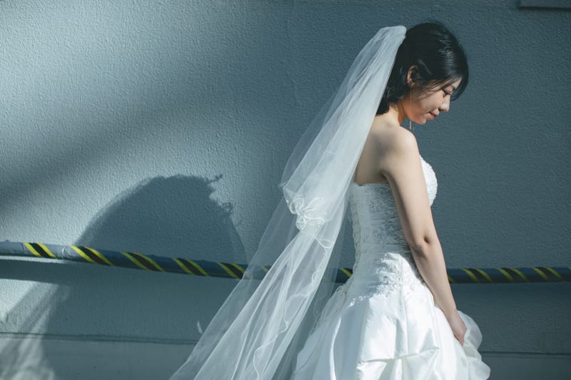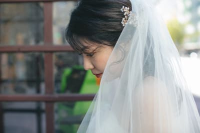 ボリュームタイプのウエディングドレスにロングベールを合わせることでよりレトロ感を出す事ができます◎ また、ヘアメイクはアップスタイルではなくダウンスタイルで少しラフにすることで かっちりしすぎないスタイルにすることができます!